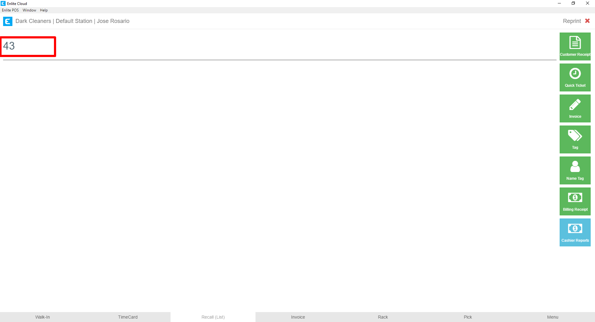 2. Search for the ticket number related to the document you would like to reprint. In this example, we are searching for ticket 43.