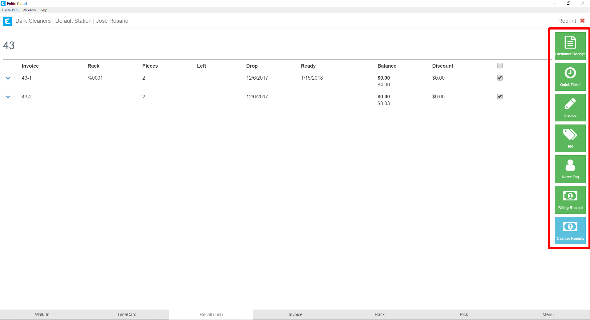 b. Quick Ticket - If a Quick Ticket was created, this will reprint.