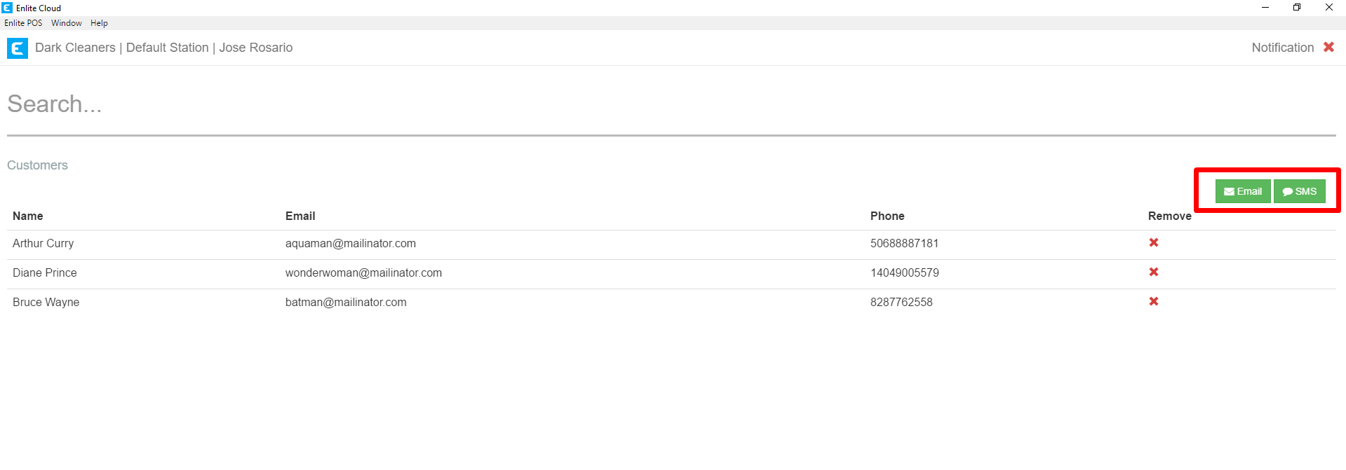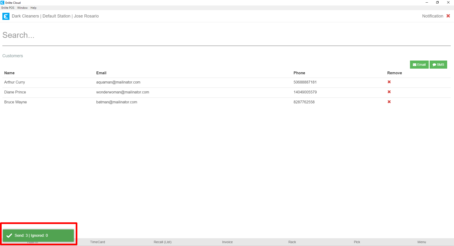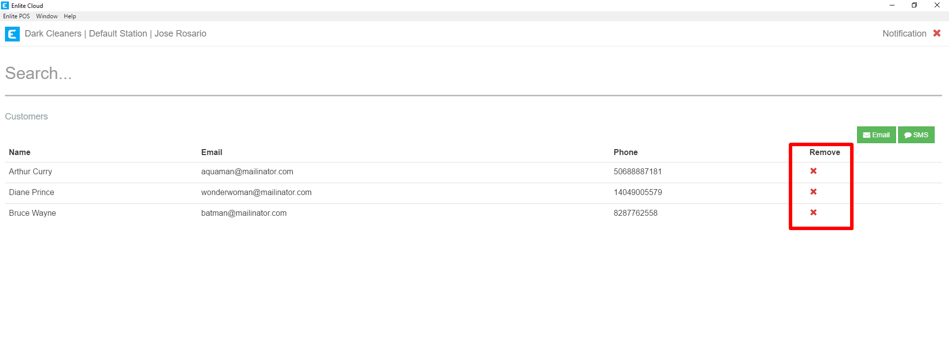 - Continue to search as many customers as you like to form your list. You may remove customers from the list by using the small red “x” to the right of the record.