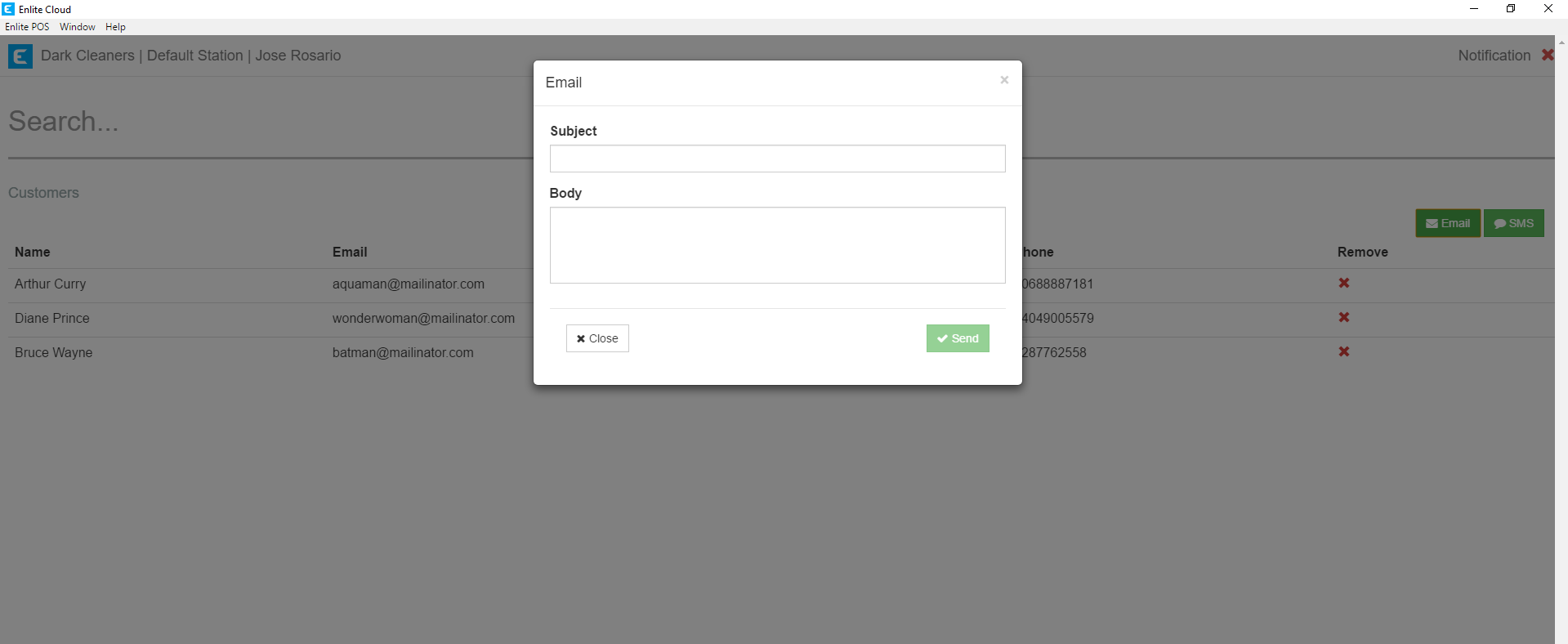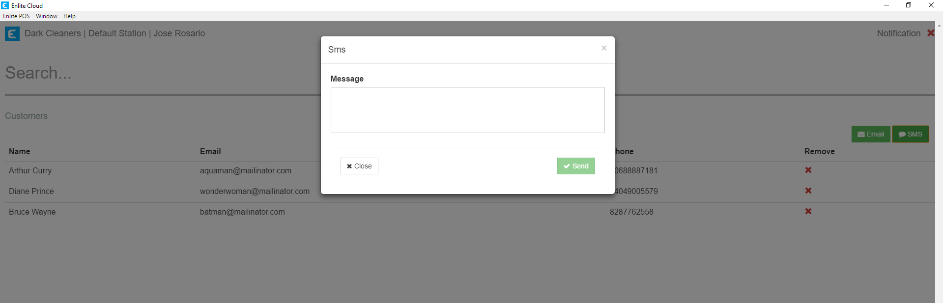 The Notifications module allows you to create a list of customers and then send an email or SMS message to the entire list.