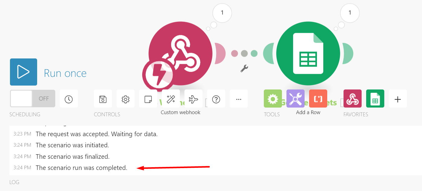 Sample Integromat Configuration for Integration to Google Sheets